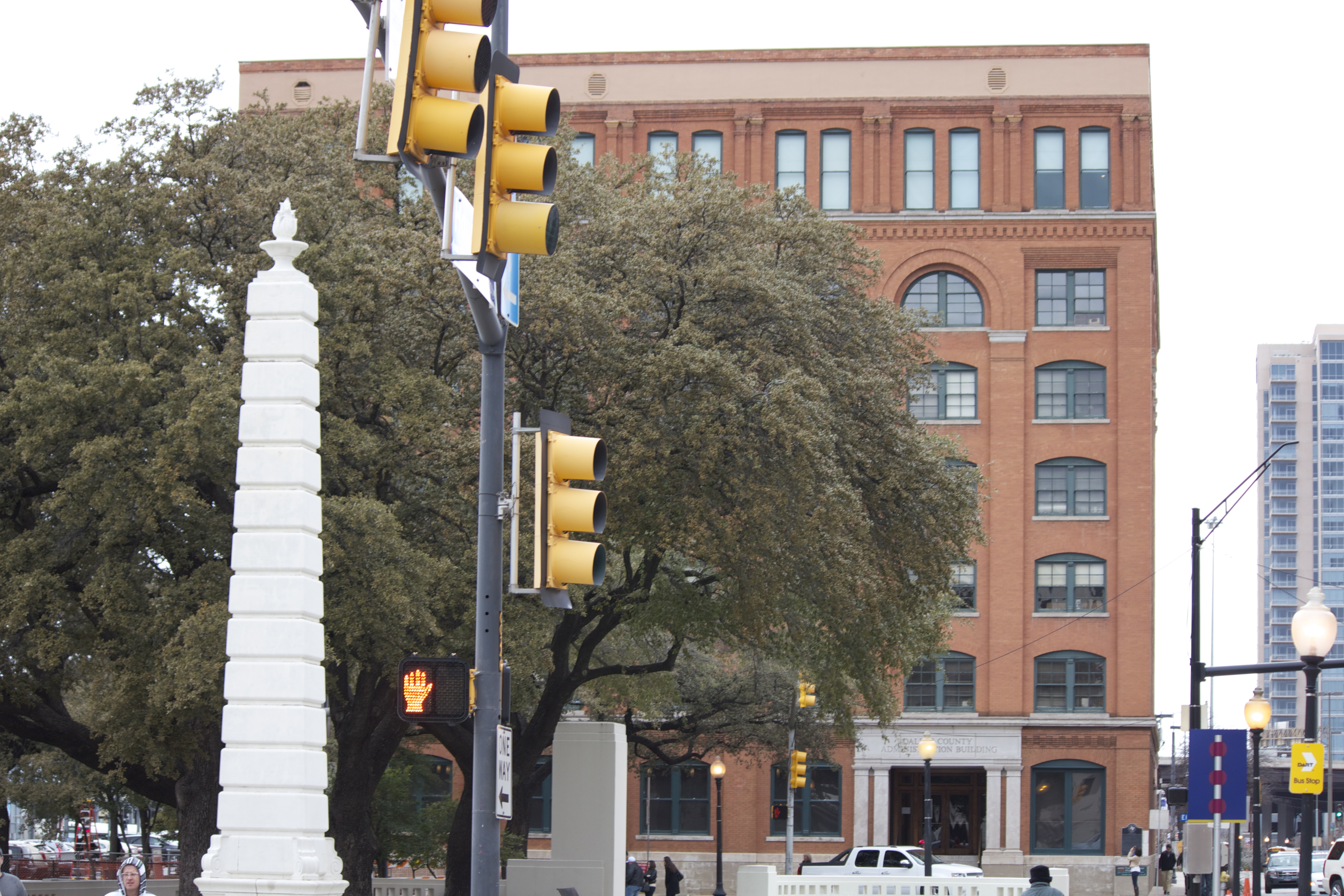 I walked all over Dealey Plaza. Here, the Book Depository is in my background.