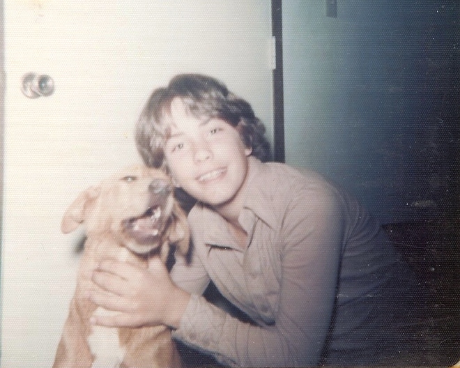 Me and My Dog Sheiba- My Hand in a Cast behind the dog