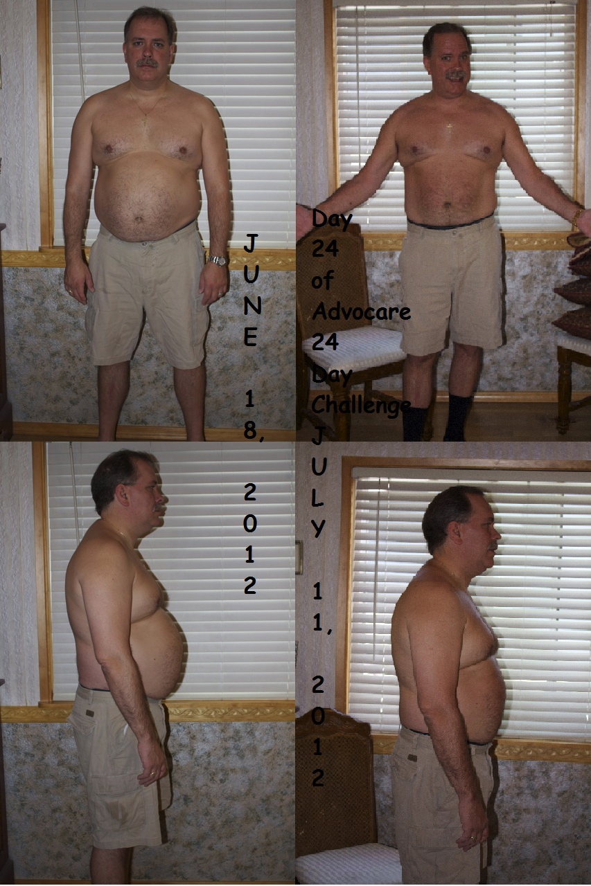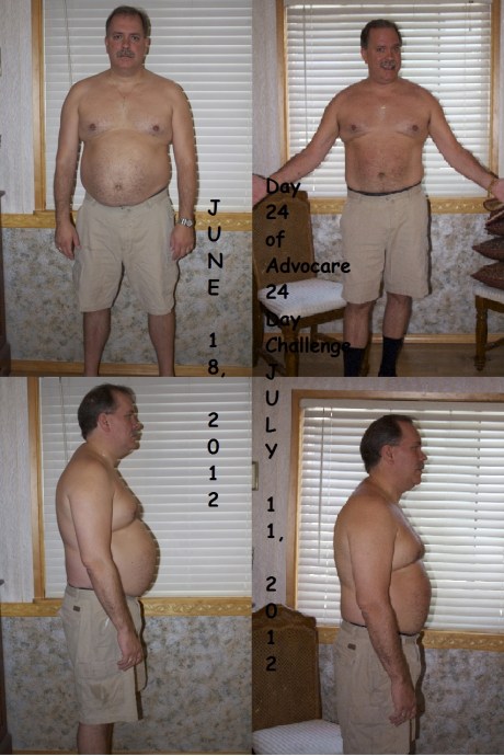 I started the AdvoCare 24 Day Challenge June 18, 2012 along with my wife. It began with the 10 Day Herbal Cleanse that we’d both liked previously. The Herbal Cleanse is a non-eventful fiber and nutritional supplement program that cleans out your digestive track of impurities and long time undigested material. It sets your body up to receive and better absorb the good nutrients and healthy living that is still to come.